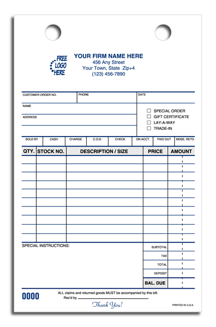 Forms available in 2 or 3 parts. 100% Satisfaction Guarantee! |